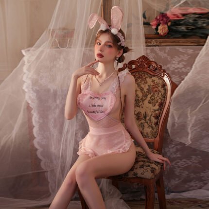 透视爱心兔耳开裆女仆装