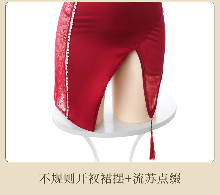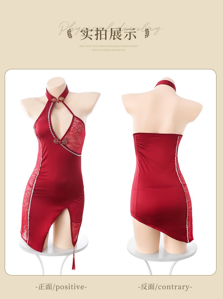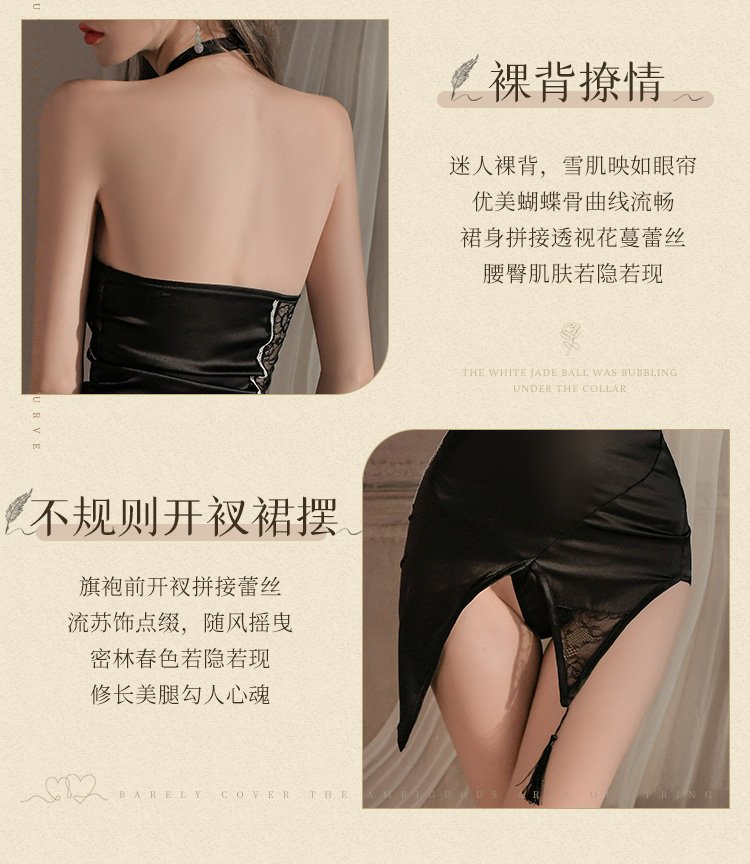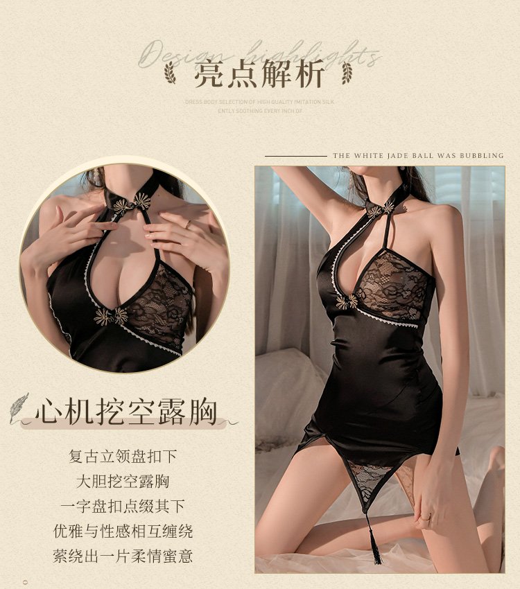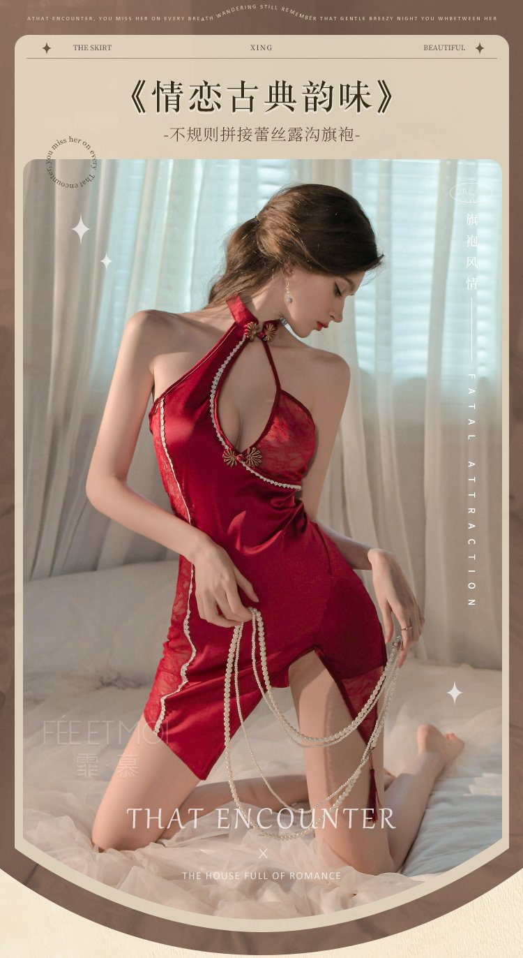 霏慕.Fée et moi 不规则拼接蕾丝露沟旗袍