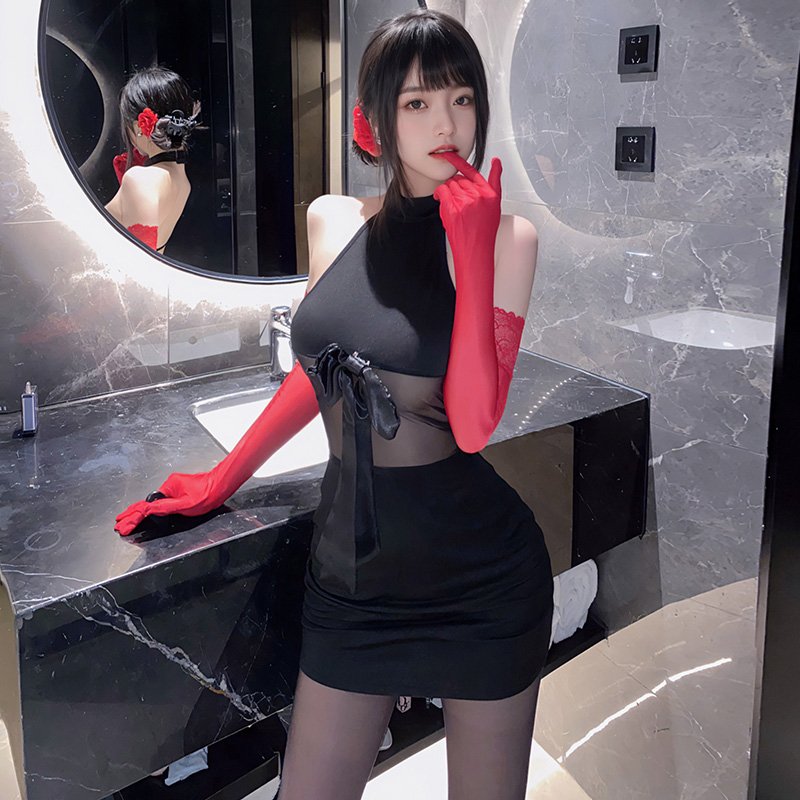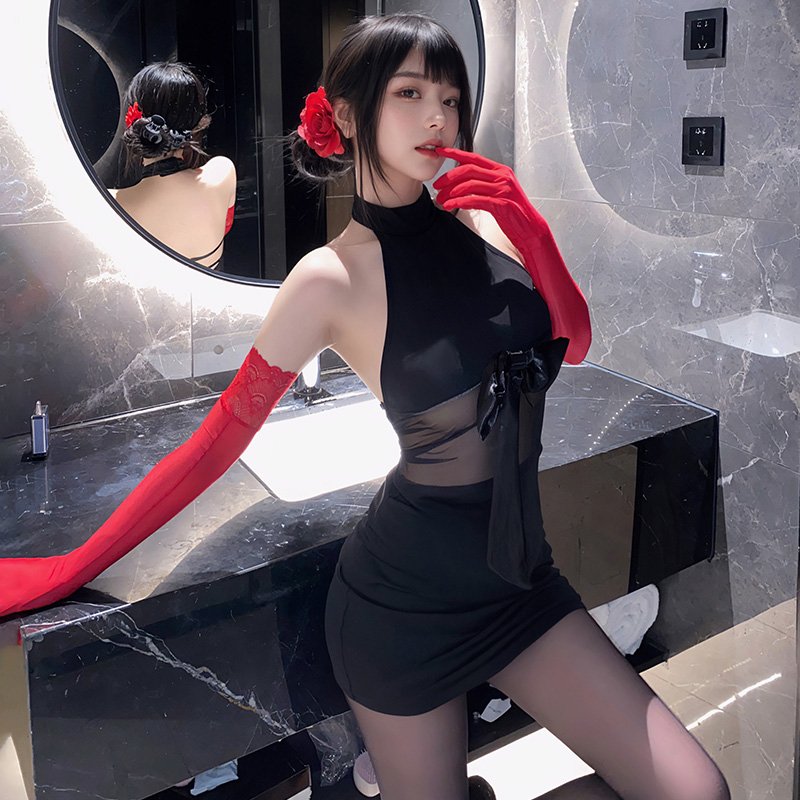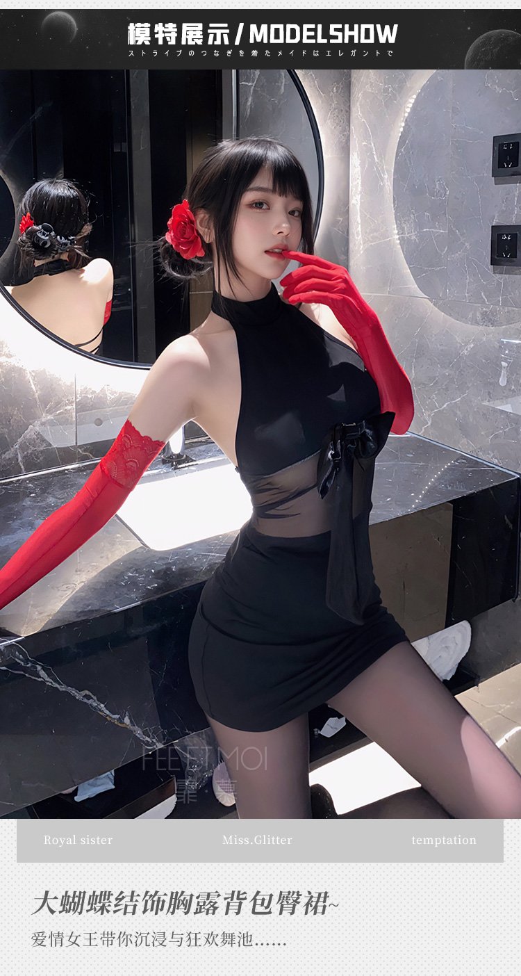 大蝴蝶结饰胸露背包臀裙