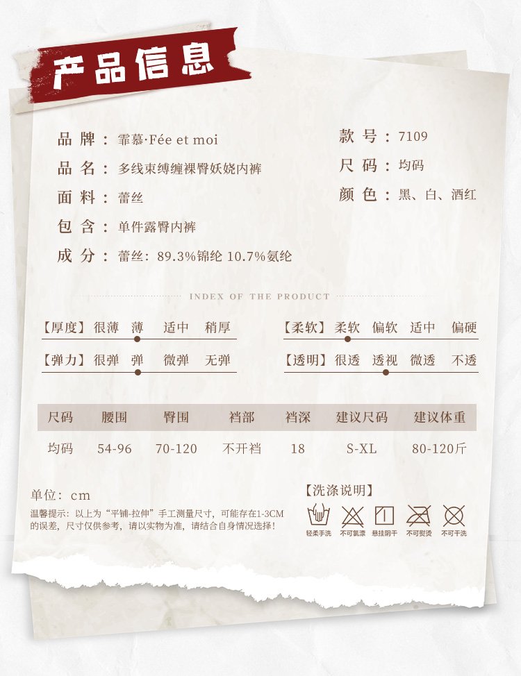 包含:单件露臀内裤