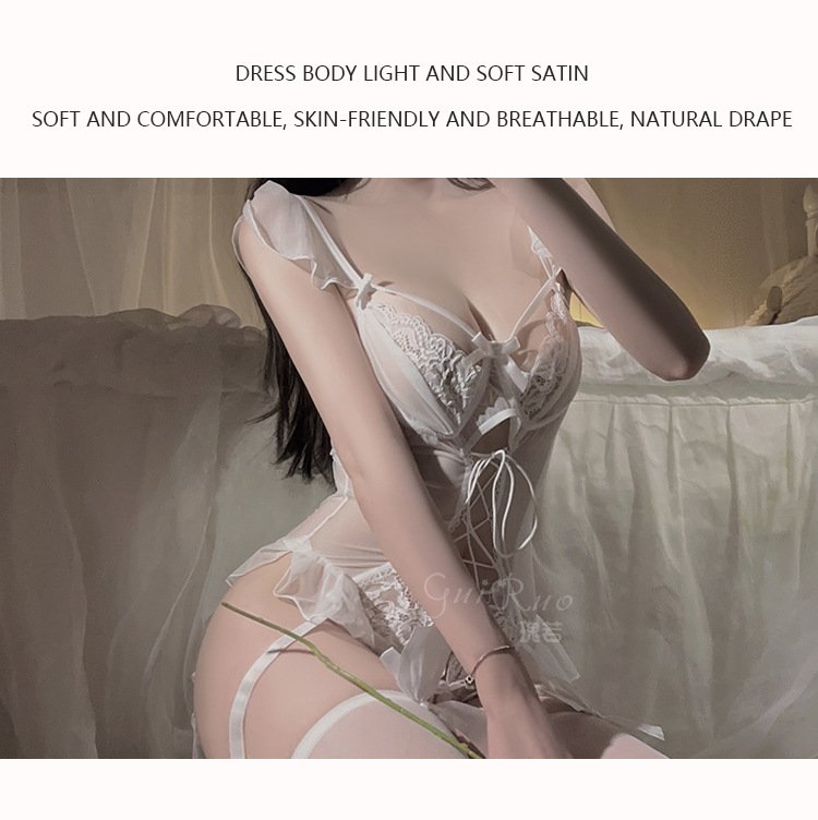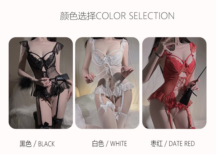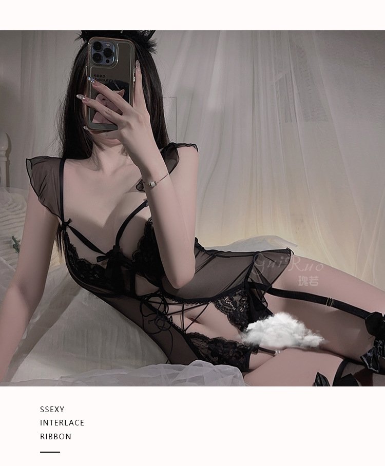 DZ瑰若性感镂空诱惑纯欲网纱开档诱惑连体衣情趣内衣制服套装