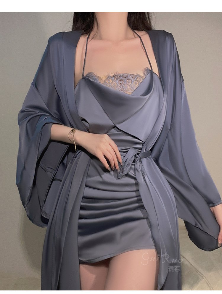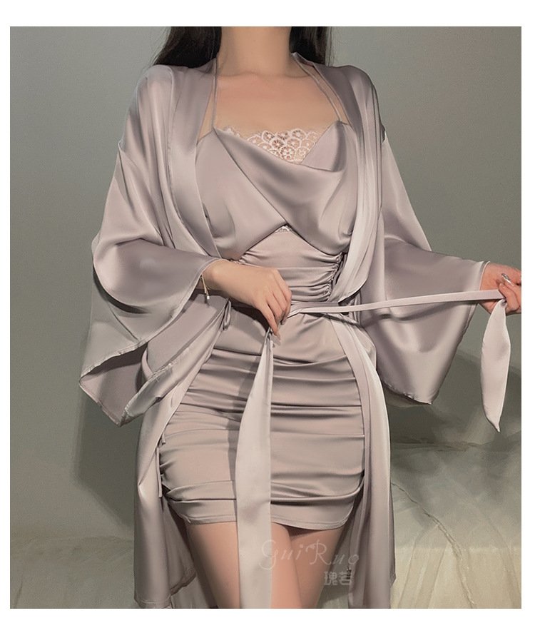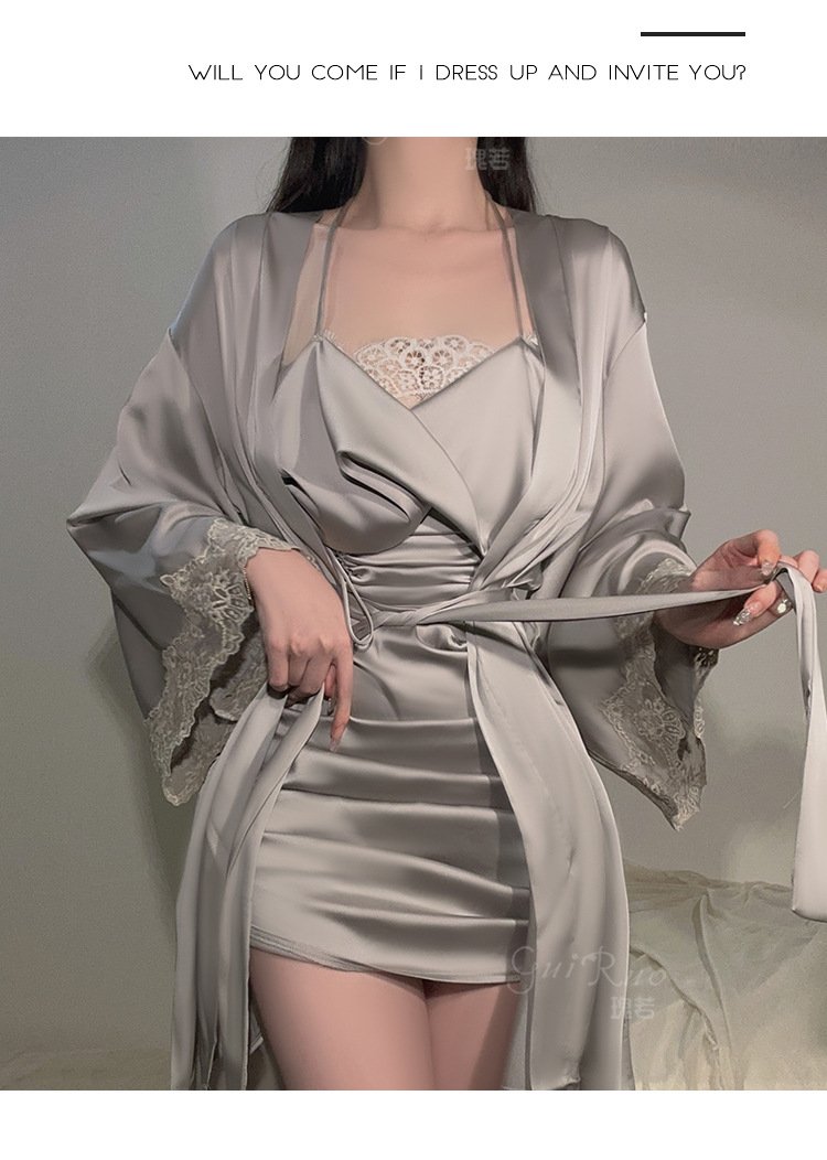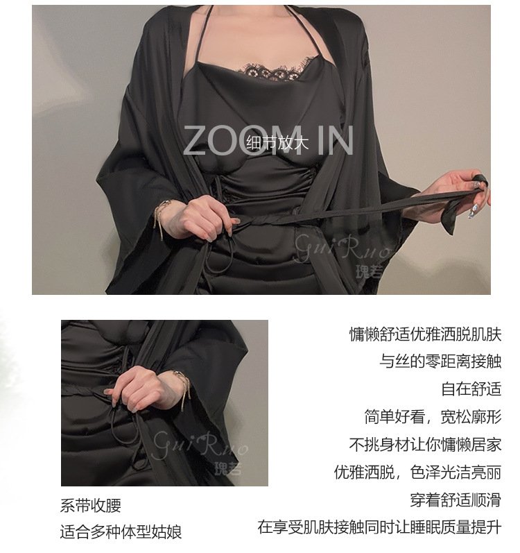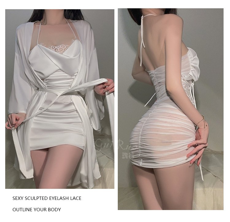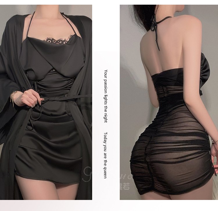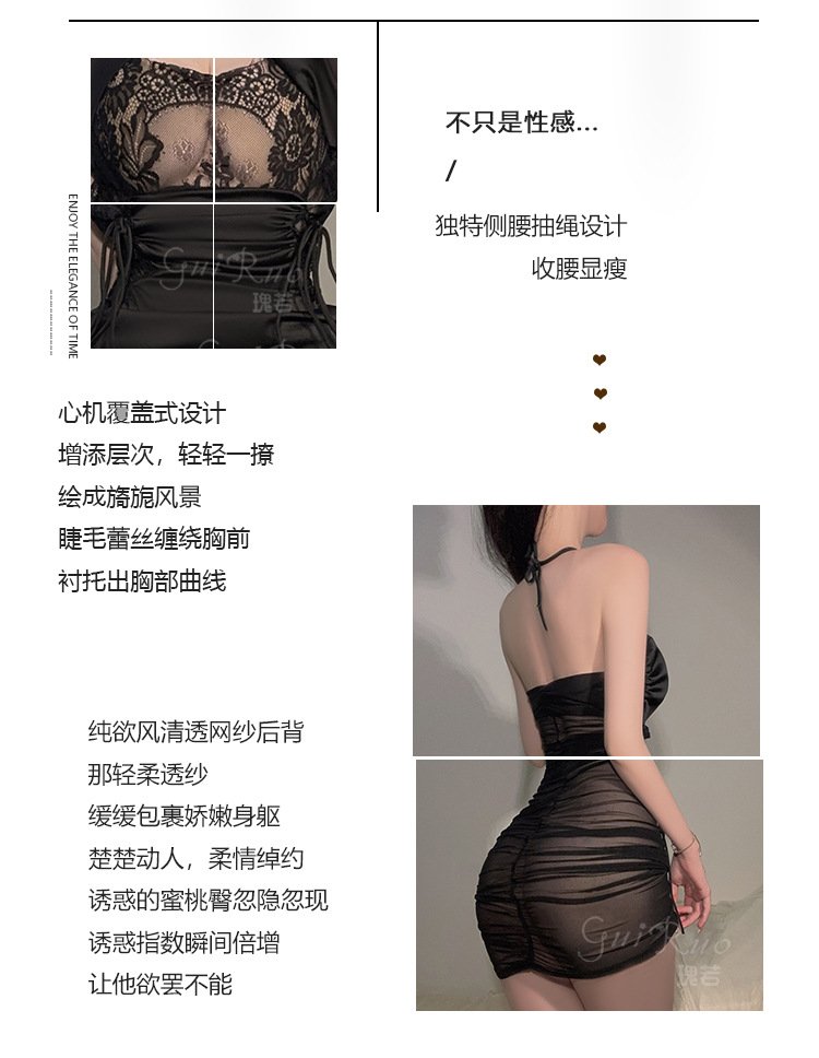 DZ瑰若品牌情趣内衣深V诱惑加胸垫激情透视网纱睡裙外袍套装