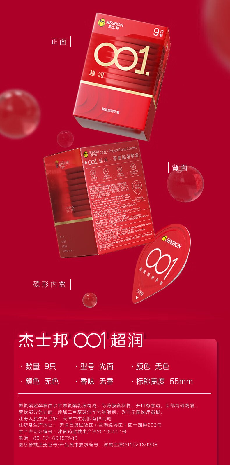 杰士邦001超润9只装