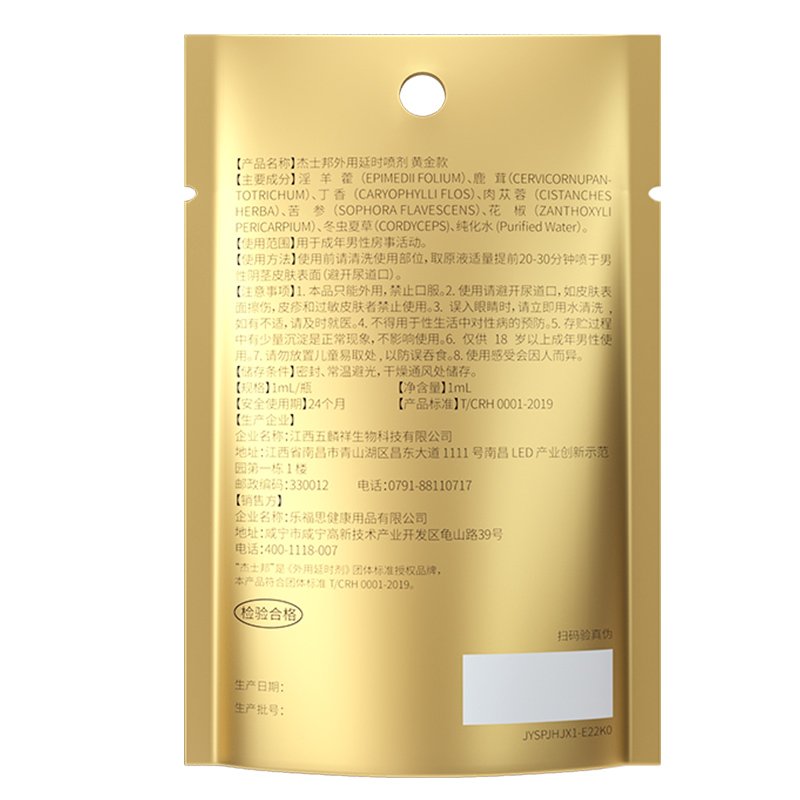 首页 安全套套 延迟加大 杰士邦外用延时喷剂 黄金款 1mL