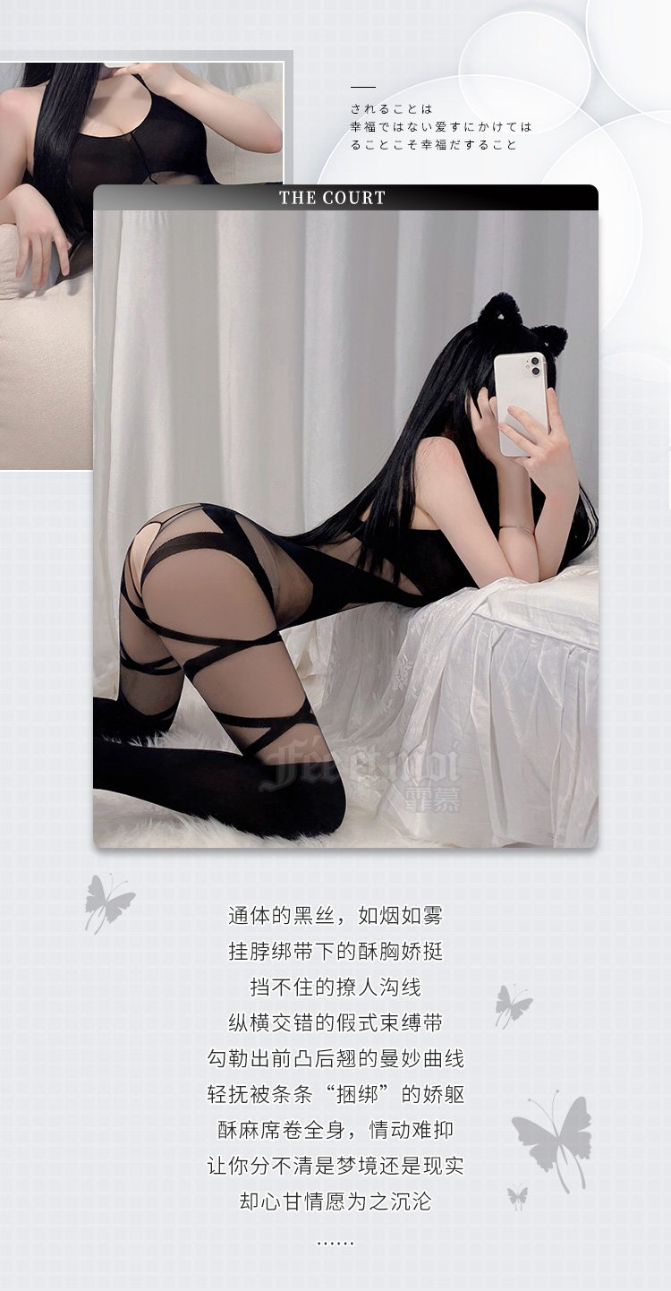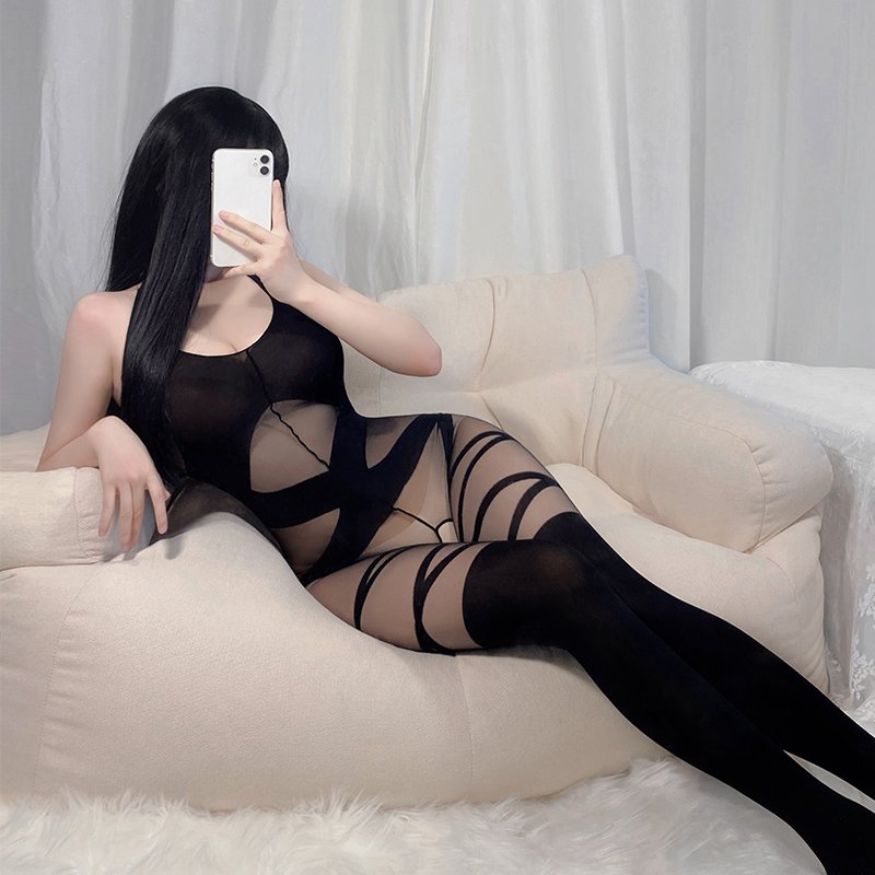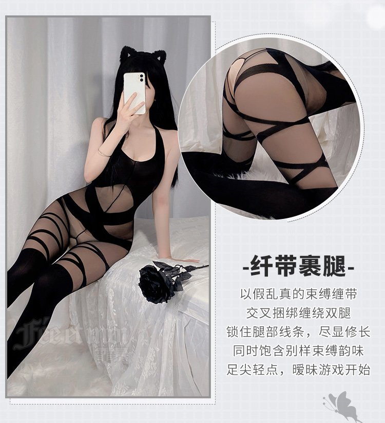 狂野交叉束缚开裆连身袜