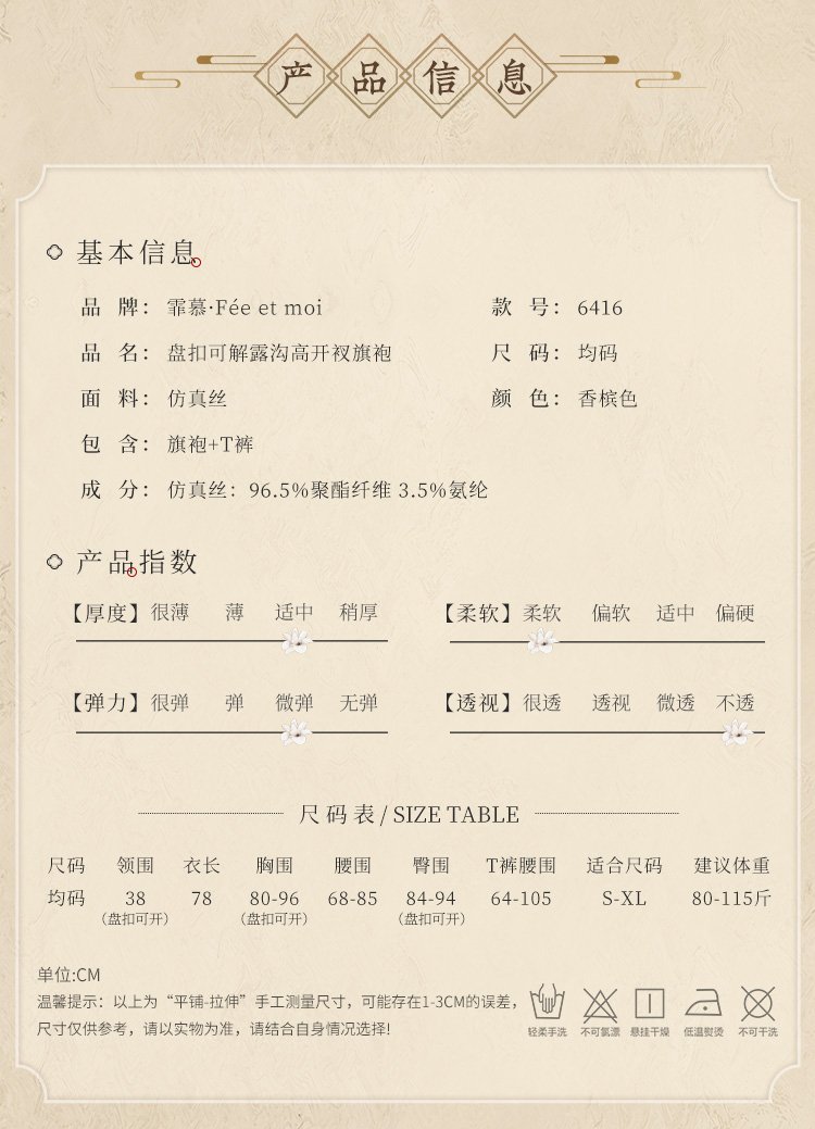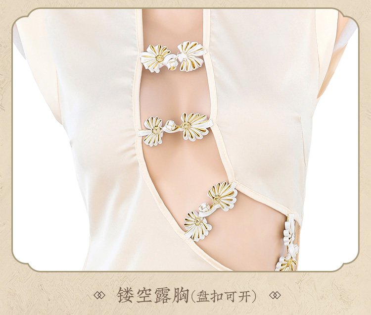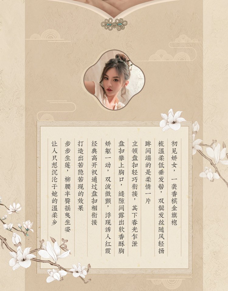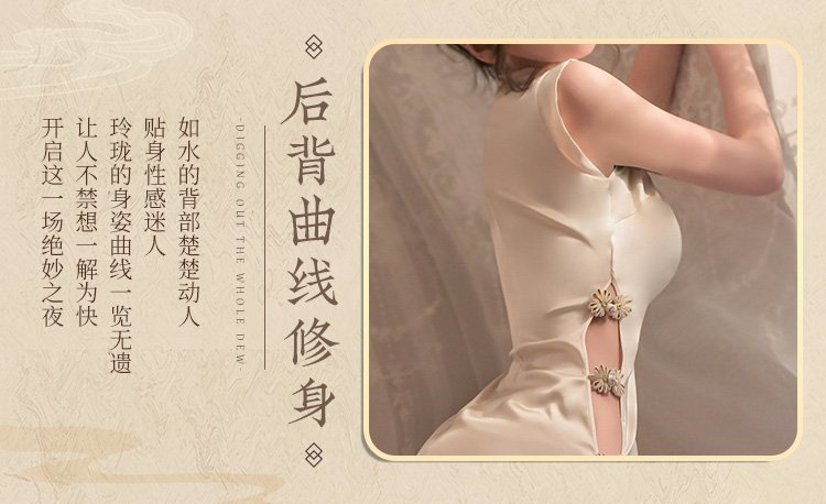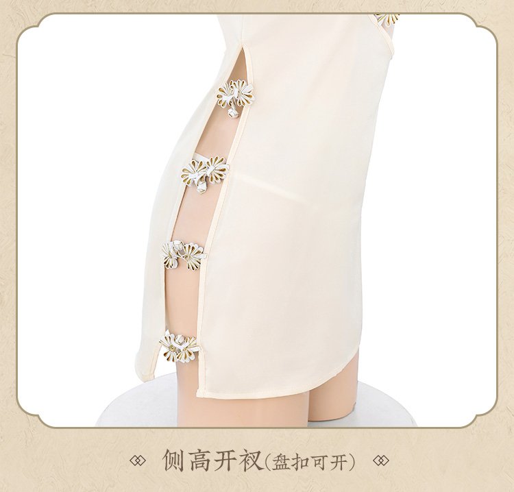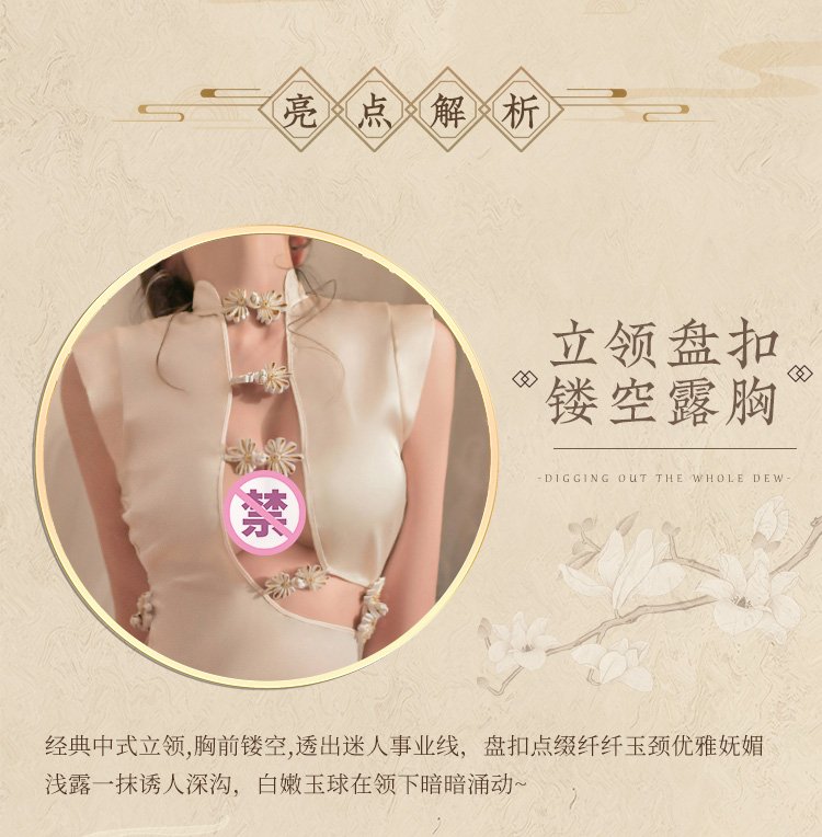 盘扣可解露沟高开衩旗袍