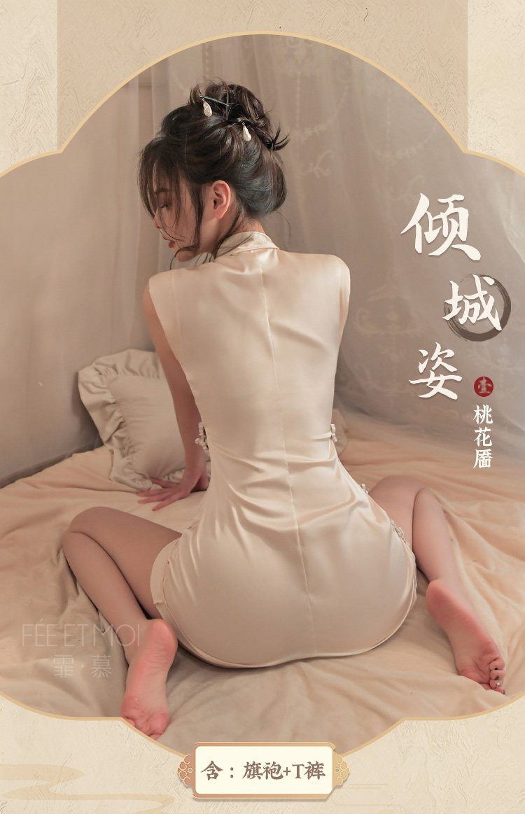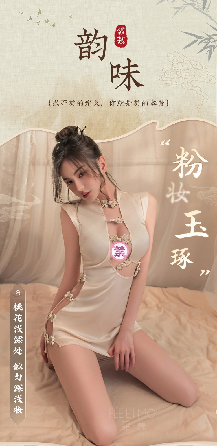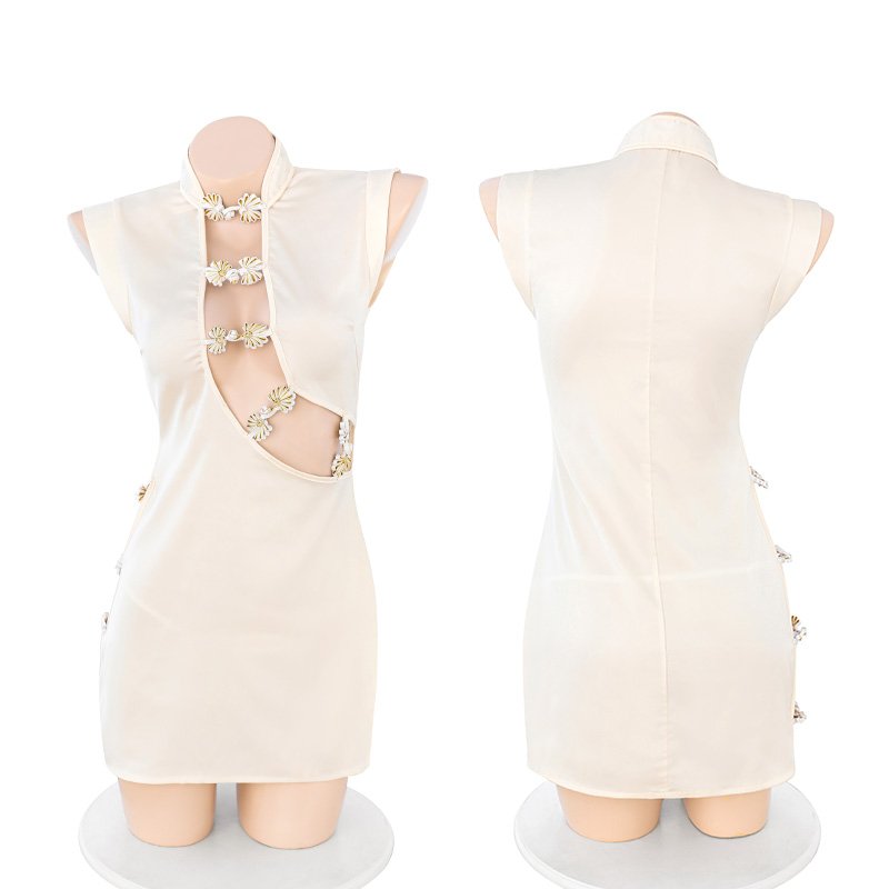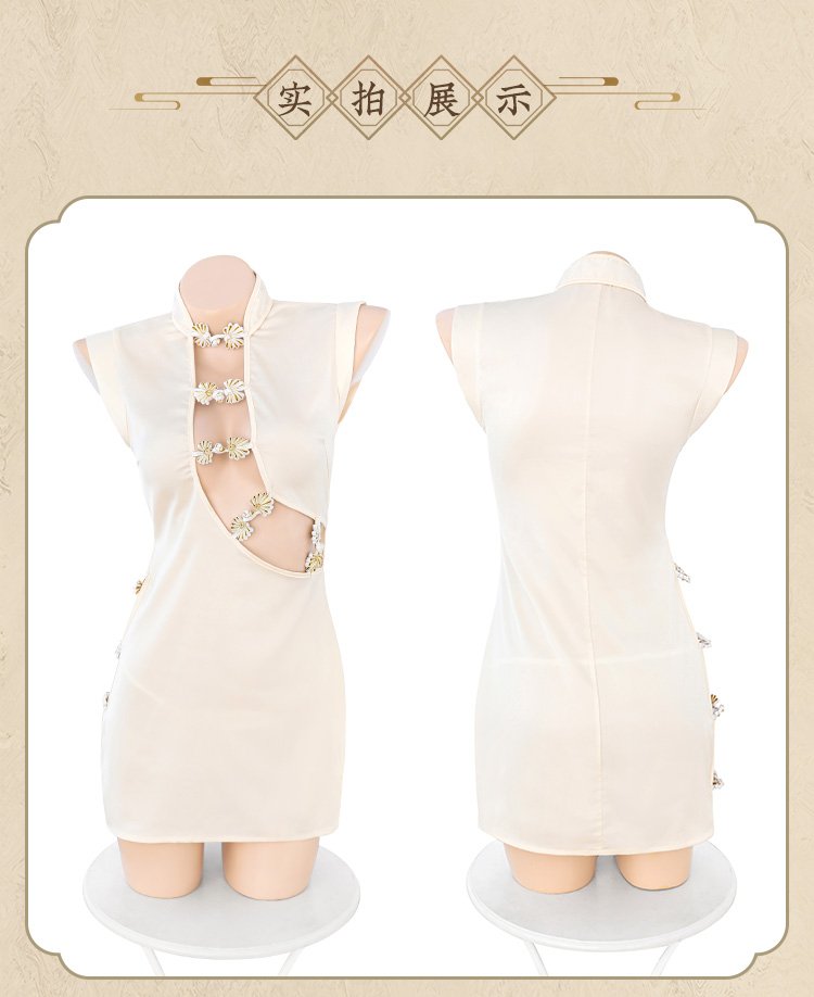盘扣可解露沟高开衩旗袍