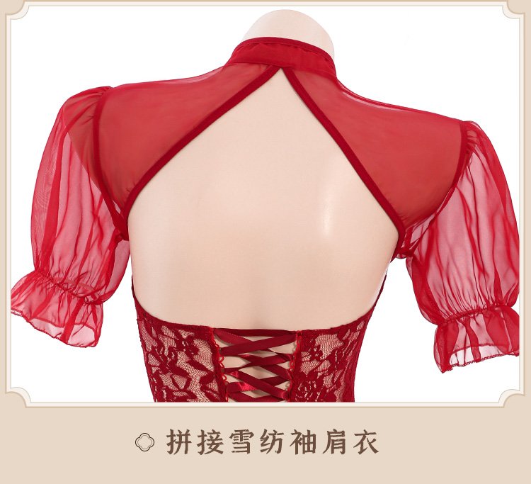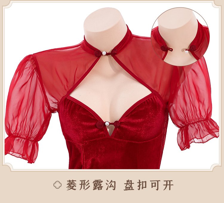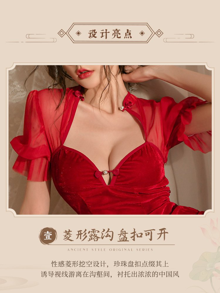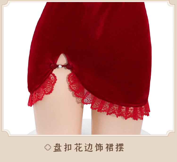 首页 情趣服饰 情趣套装 旗袍&古装 丝绒拼蕾丝妩媚透臀旗袍