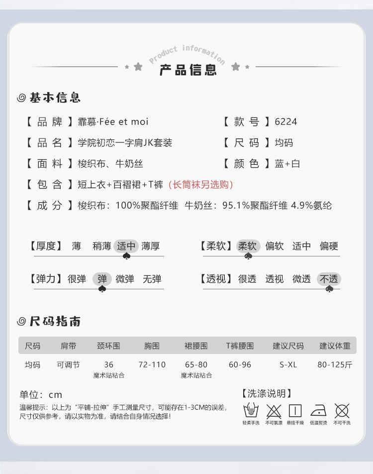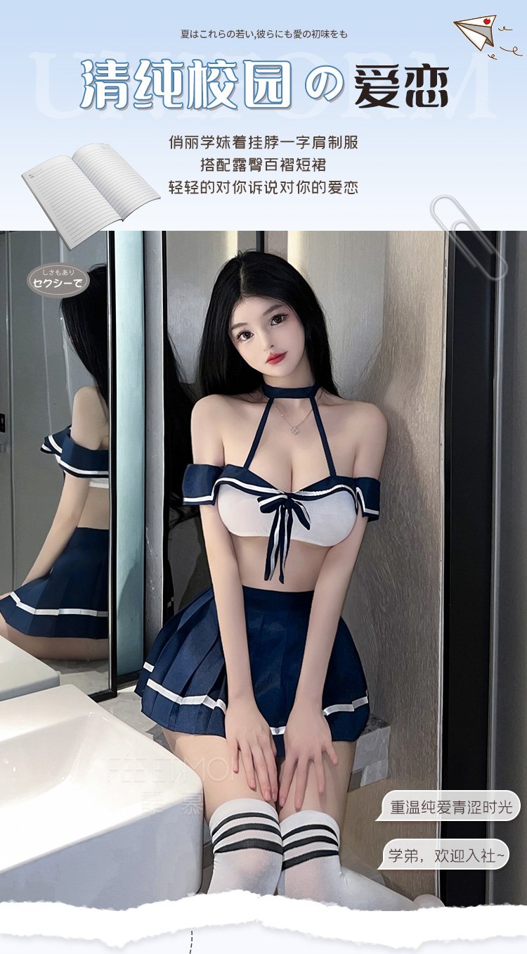 学院初恋一字肩水套装